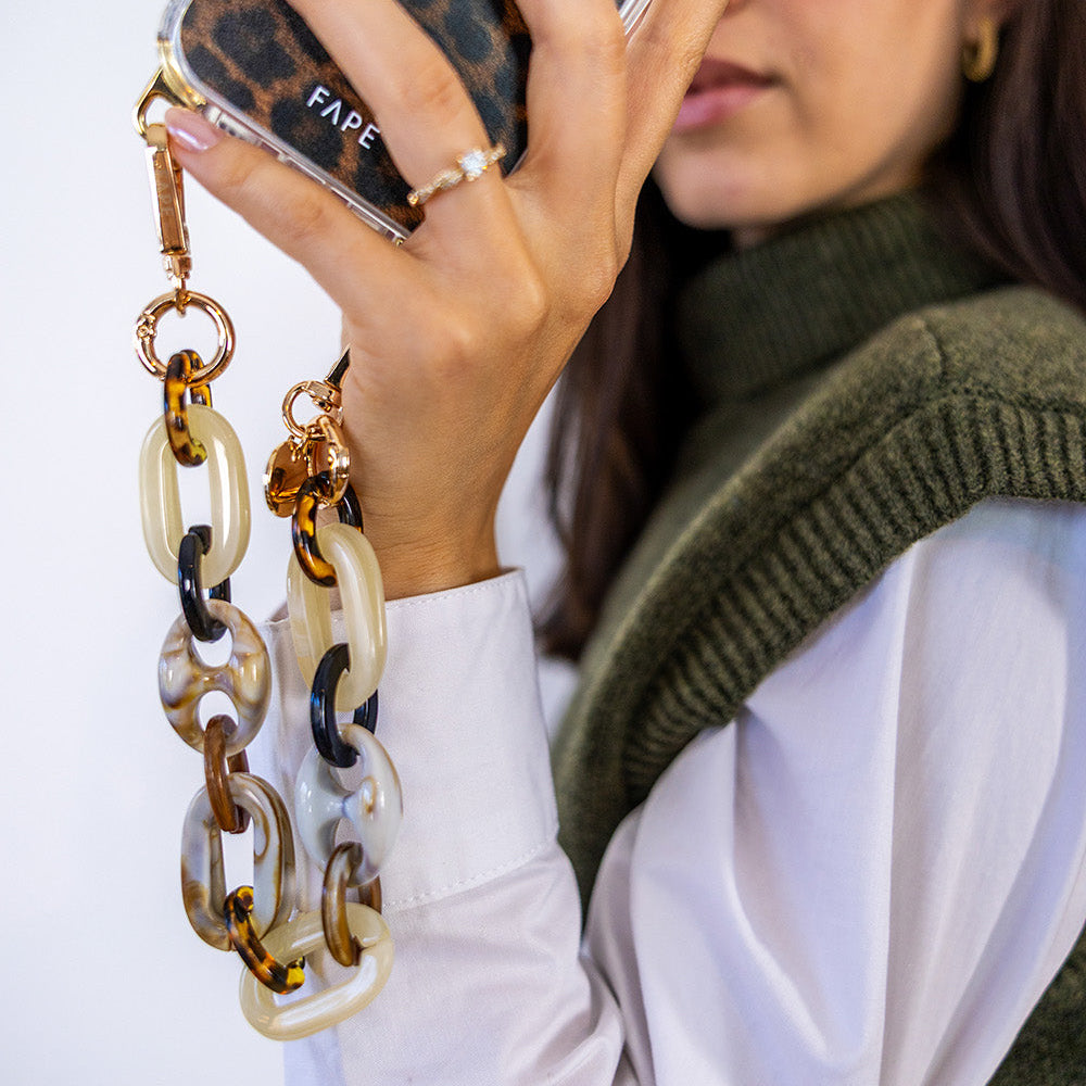 Unsere kurzen Acryl-Handyketten sind mehr als nur ein praktisches Accessoire – sie sind ein Statement. Die glänzenden Acryl-Glieder fangen das Licht auf eine ganz besondere Weise ein und verleihen deinem Look sofort eine elegante Note. Durch die kürzere Länge ist dein Smartphone sicher, griffbereit und doch federleicht, fast so, als würdest du es wie ein Schmuckstück tragen.