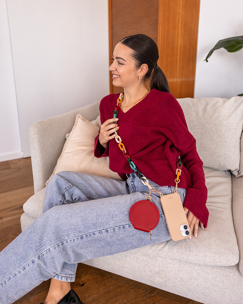 Die Aurora Handykette fängt das magische Licht eines Herbstabends ein – warm, golden und voller Ruhe. Ihre schimmernden Acryl-Glieder in herbstlichen Tönen erinnern an den Moment, wenn die Sonne langsam untergeht und alles in ein sanftes Leuchten taucht.