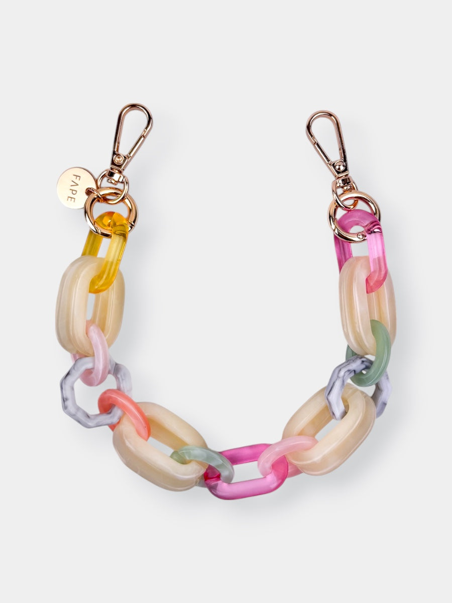 Die glänzenden Acryl-Glieder fangen das Licht auf eine ganz besondere Weise ein und verleihen deinem Look sofort eine elegante Note. Durch die kürzere Länge liegt dein Smartphone nah am Körper – sicher, griffbereit und doch federleicht, fast so, als würdest du es wie ein Schmuckstück tragen.