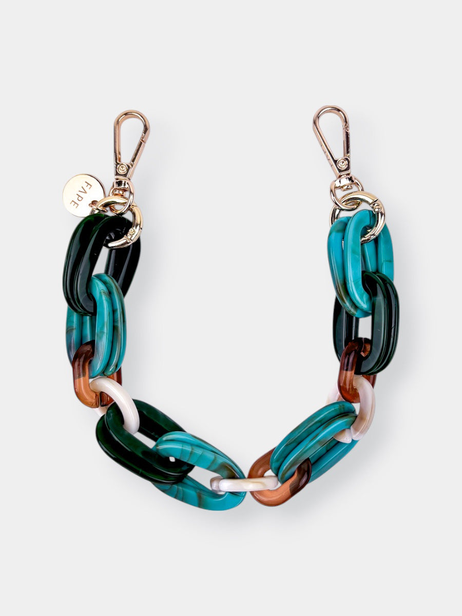 Die glänzenden Acryl-Glieder fangen das Licht auf eine ganz besondere Weise ein und verleihen deinem Look sofort eine elegante Note. Durch die kürzere Länge liegt dein Smartphone nah am Körper – sicher, griffbereit und doch federleicht, fast so, als würdest du es wie ein Schmuckstück tragen.